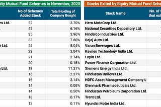 Activities of Equity Mutual Fund Schemes - November 2025
