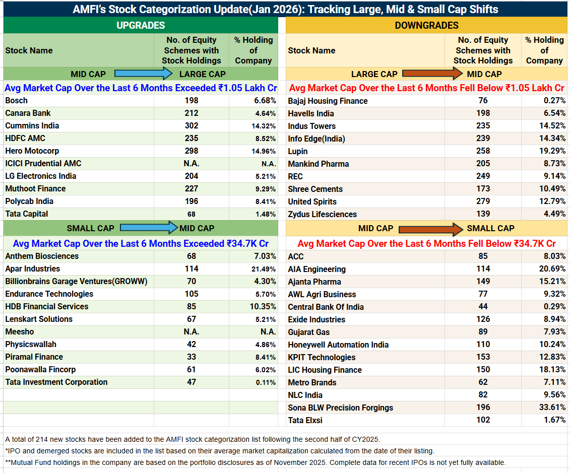 AMFI’s Stock Categorization Update (Jan 2026): Tracking Large, Mid & Small Cap Shifts